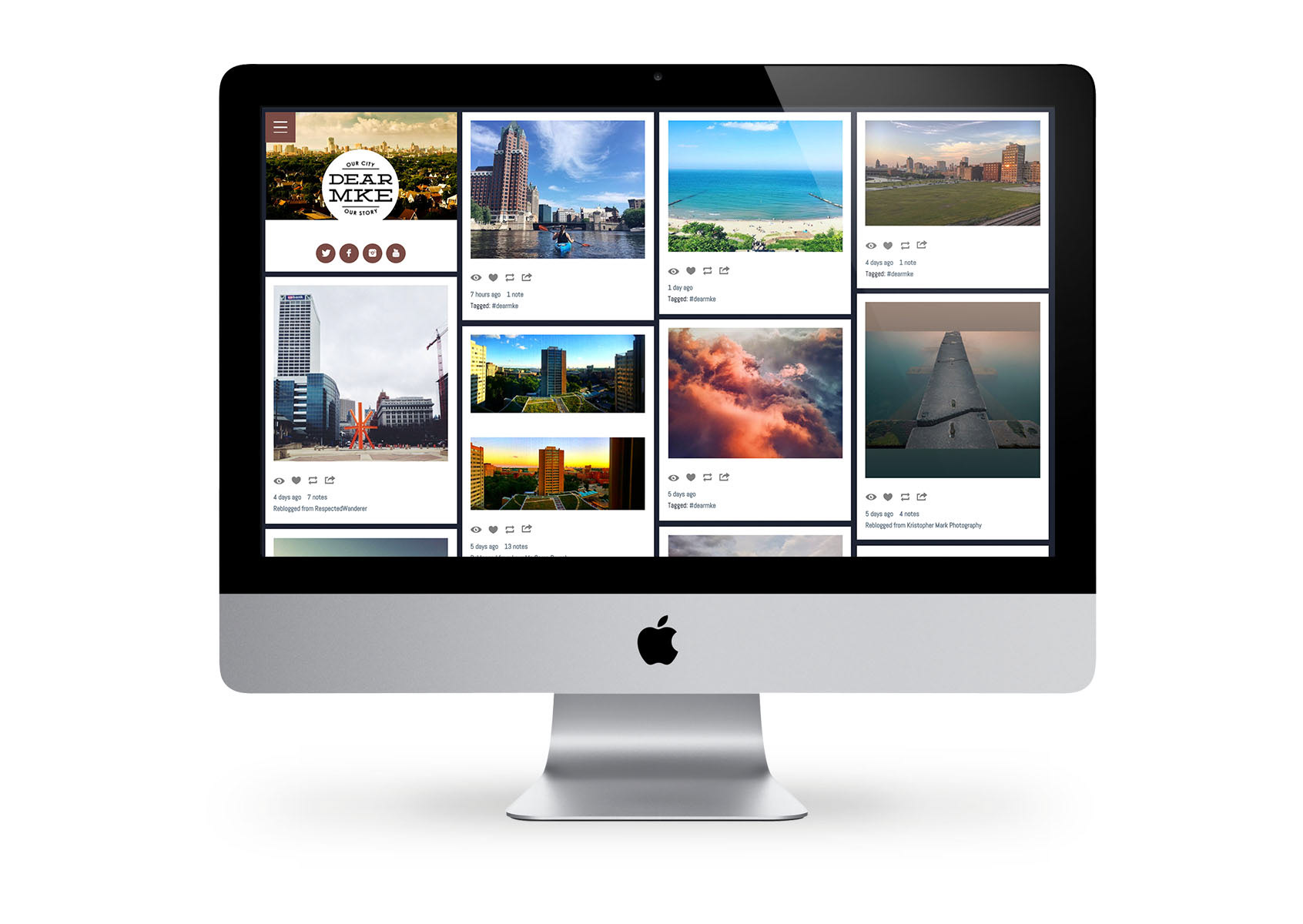 DearMKE is a love letter to Milwaukee from Milwaukeeans. The project began with 14 authentic, unscripted documentaries by Milwaukee film makers and has expanded to include photos, experiences, memories, and stories shared by locals. The brand was in need of a refresh to correspond with the launch of the new mobile and social friendly Tumblr-hosted site at the Worldwide InstaMeet held on April 22, 2016.